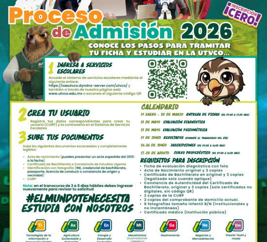 Apertura UTVCO primera convocatoria de admisión 2026